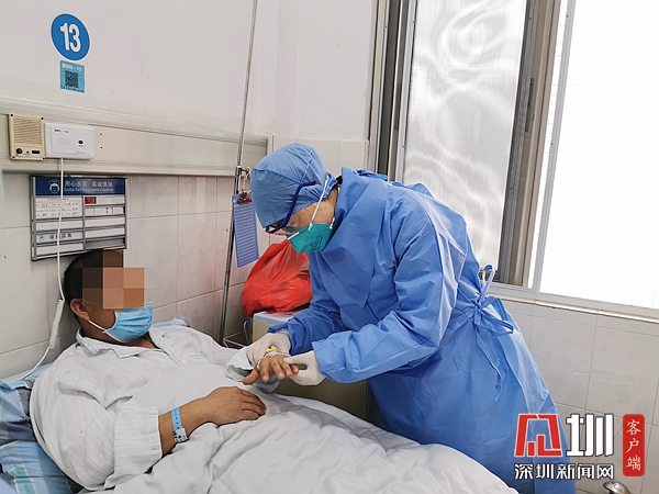 活潑開朗的徐悅玲一邊用自己的護(hù)理專業(yè)保護(hù)患者,一邊用貼心的聊天術(shù)寬慰著患者。一位50多歲的阿叔因?yàn)榘l(fā)燒入住感染科進(jìn)行隔離。一見人就急著問他什么時(shí)候可以出院,徐悅玲耐心給他解釋:“阿叔,您現(xiàn)在還發(fā)燒,一般情況等燒退了三天后,兩次病毒檢查是陰性,抽血檢查及肺部情況好轉(zhuǎn),醫(yī)生才允許您出院哦?!?/p>