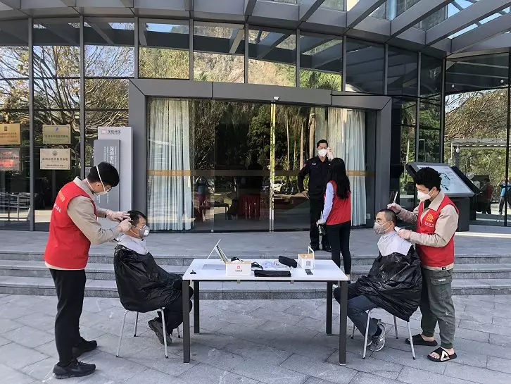 二月二,龍?zhí)ь^,一把椅子、一面鏡子、一套剃發(fā)工具,鹽田能源生態(tài)園的簡(jiǎn)易理發(fā)室開張啦。防疫先鋒戰(zhàn)斗隊(duì)五人義剪小分隊(duì)隨即開始行動(dòng),對(duì)理發(fā)室開啟自然通風(fēng),對(duì)理發(fā)用具進(jìn)行消毒,清潔雙手,全部使用一次性“斗篷”,確保理發(fā)過(guò)程中一“客”一換一消毒……準(zhǔn)備工作做好后,Tony老師開啟微信排號(hào),統(tǒng)一戴上口罩,測(cè)量體溫登記后,提拉剪推,一氣呵成。本次義剪為30余名員工解決了“頭”大事,大家“輕裝上陣”,將以更飽滿的精神投入到疫情防控和安全生產(chǎn)工作中。