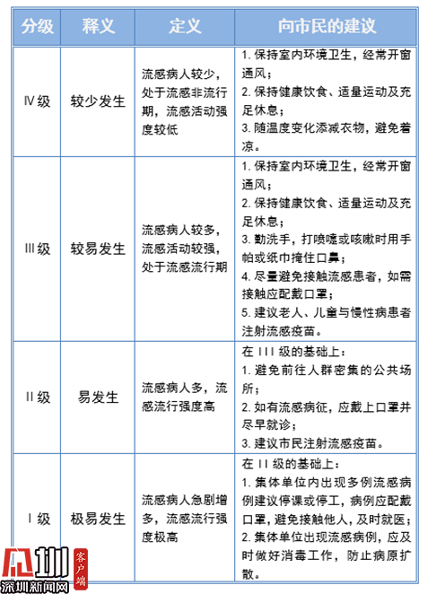 根據(jù)深圳市疾控中心發(fā)布的流感指數(shù)應(yīng)對(duì)指引,市民應(yīng)保持室內(nèi)環(huán)境衛(wèi)生,經(jīng)常開(kāi)窗通風(fēng);保持健康飲食、適量運(yùn)動(dòng)及充足休息;勤洗手,打噴嚏或咳嗽時(shí)用手帕或紙巾掩住口鼻;盡量避免接觸流感患者,如需接觸應(yīng)配戴口罩;建議老人、兒童與慢性病患者注射流感疫苗。