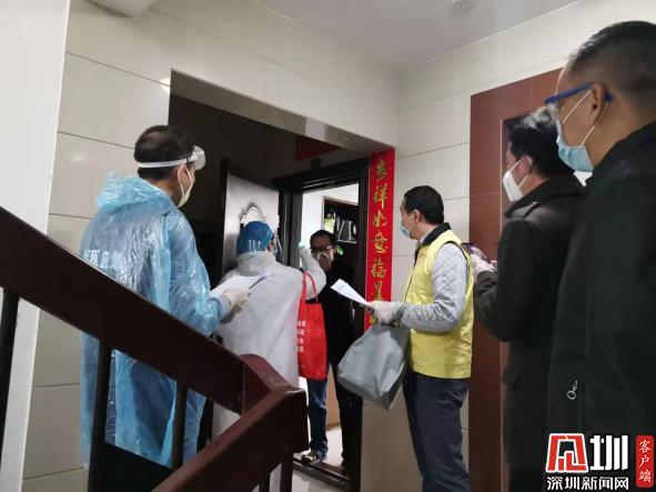許曉銳(著黃馬甲)協(xié)助醫(yī)生對韓國返深家庭進(jìn)行核酸檢測采樣