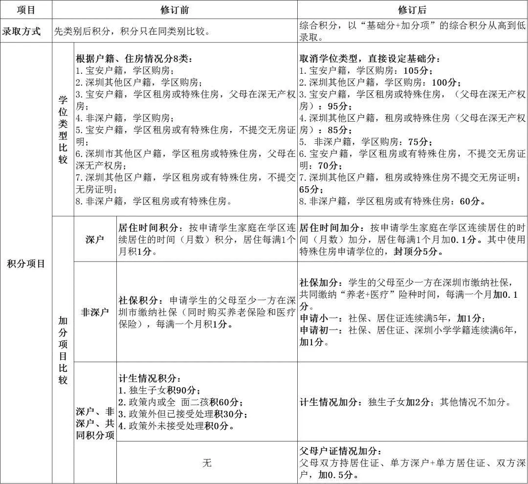 取消"非深戶籍可以以父母戶籍遷入深圳的時間計算積分"和"多子女就讀同所學(xué)校情況加分"兩項加分項;