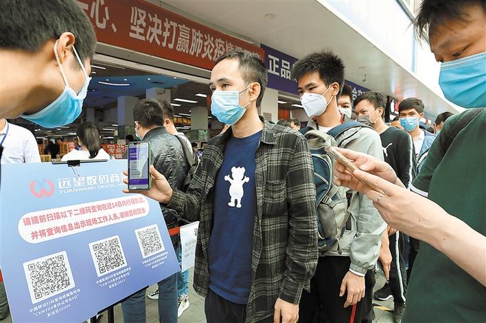 為方便市場(chǎng)了解人員去向,華強(qiáng)北街道指導(dǎo)市場(chǎng)管理方利用運(yùn)營(yíng)商推送服務(wù),引導(dǎo)商戶通過(guò)掃描相應(yīng)的運(yùn)營(yíng)商二維碼,獲取人員過(guò)去14天去向,做到入場(chǎng)人員信息“一掃清”。根據(jù)有關(guān)通知,商戶準(zhǔn)備好自己的健康檔案、i深圳、“一掃清”等信息,經(jīng)現(xiàn)場(chǎng)測(cè)溫正常,若是從外地返深人員,按要求進(jìn)行居家隔離后,才能順利取得市場(chǎng)商戶通行證。通行證需要配合身份證使用,確保一人一證。另外,華強(qiáng)北街道還通過(guò)升級(jí)通風(fēng)系統(tǒng)等方式加大了室內(nèi)空氣流動(dòng)量。(深圳商報(bào)記者 余海波 攝影報(bào)道)