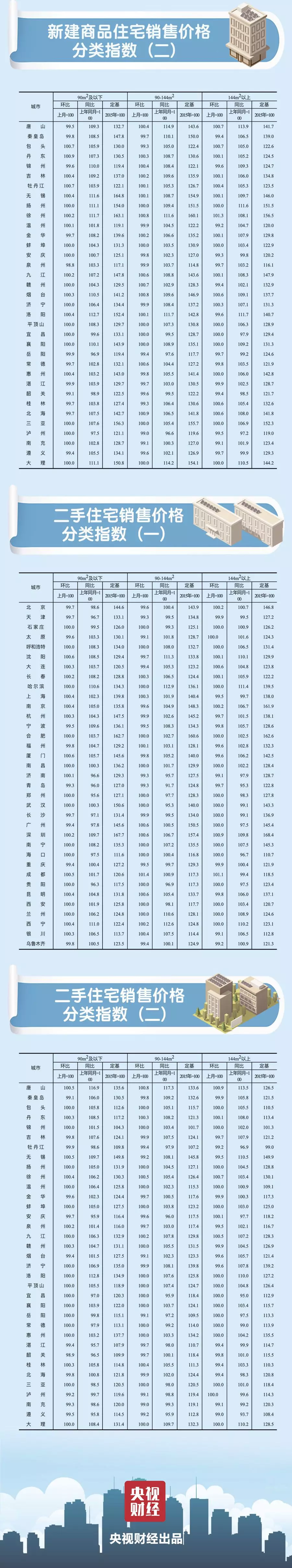 一二三線城市新建商品住宅銷售價格環(huán)比持平或漲幅回落、二手住宅銷售價格漲跌互現(xiàn)