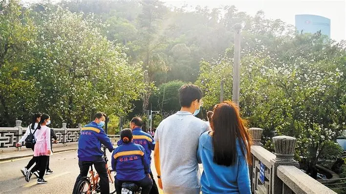 在蓮花山公園,不少市民賞花漫步,仍然戴著口罩,在享受好天氣的同時(shí),也不放松對(duì)病毒的警惕。