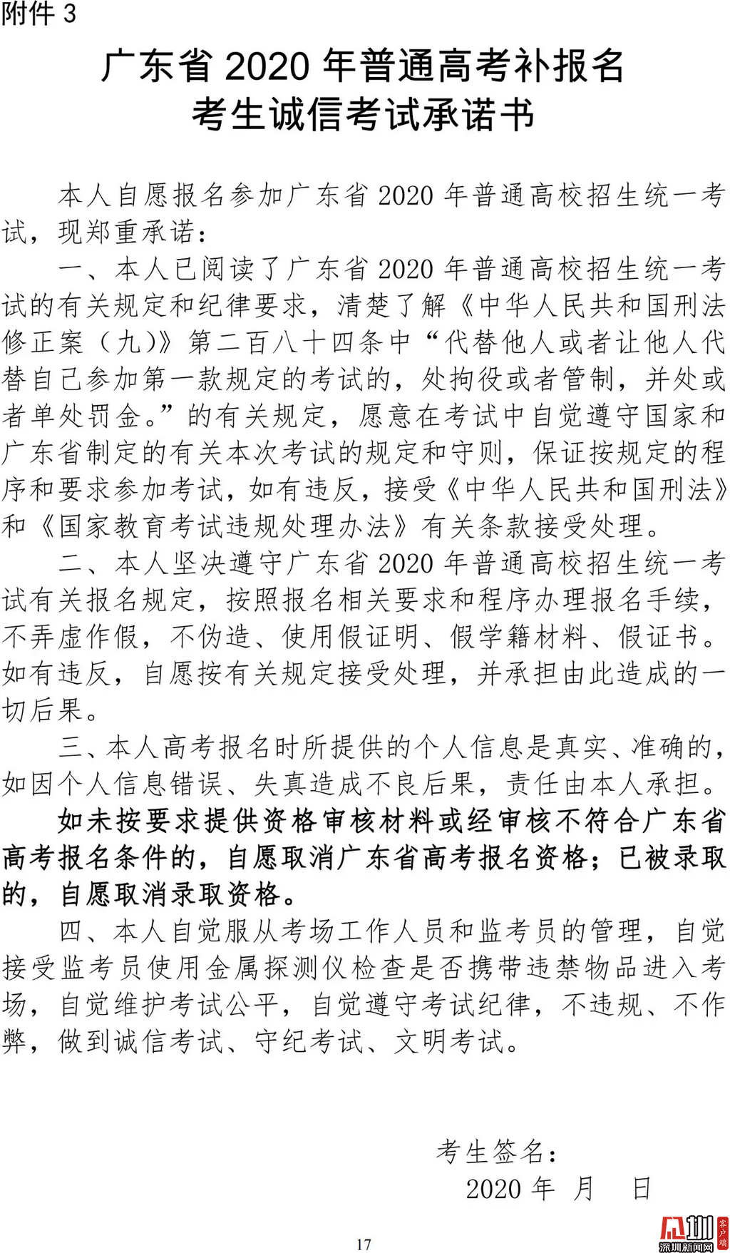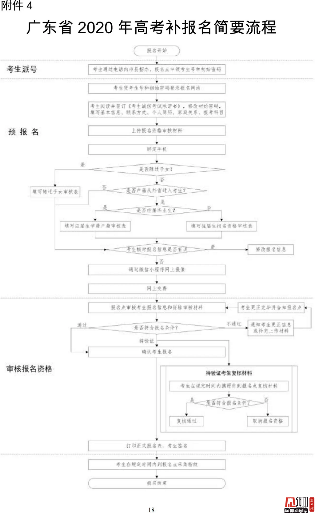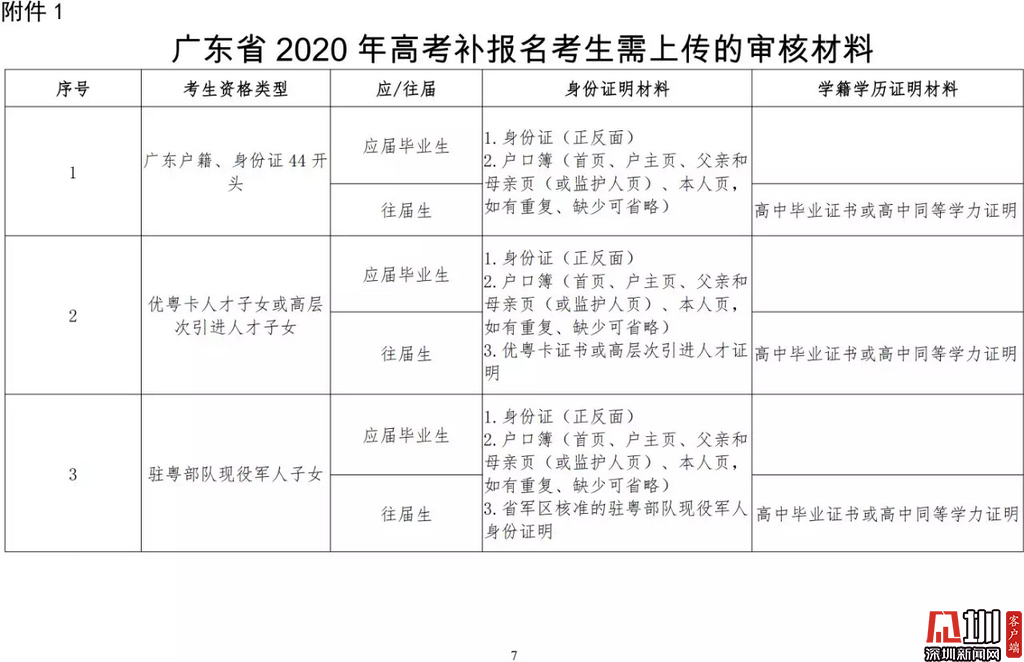 見圳客戶端·深圳新聞網(wǎng)2020年3月19日訊(見圳客戶端、深圳新聞網(wǎng)記者 金洪竹)3月18日,記者從廣東省招生委員會(huì)辦公室獲悉,為滿足退伍軍人、運(yùn)動(dòng)訓(xùn)練及武術(shù)與民族傳統(tǒng)體育考生、高職院校自主招生考生等符合我省高考條件,因各種原因尚未參加高考報(bào)名人員的需求,經(jīng)研究決定安排一次高考補(bǔ)報(bào)名,補(bǔ)報(bào)名時(shí)間為3月23-26日。同時(shí),為確??忌涂荚嚬ぷ魅藛T的生命安全和身體健康,減少聚集,本次高考補(bǔ)報(bào)名采取先線上辦理、后補(bǔ)驗(yàn)材料的方式進(jìn)行。