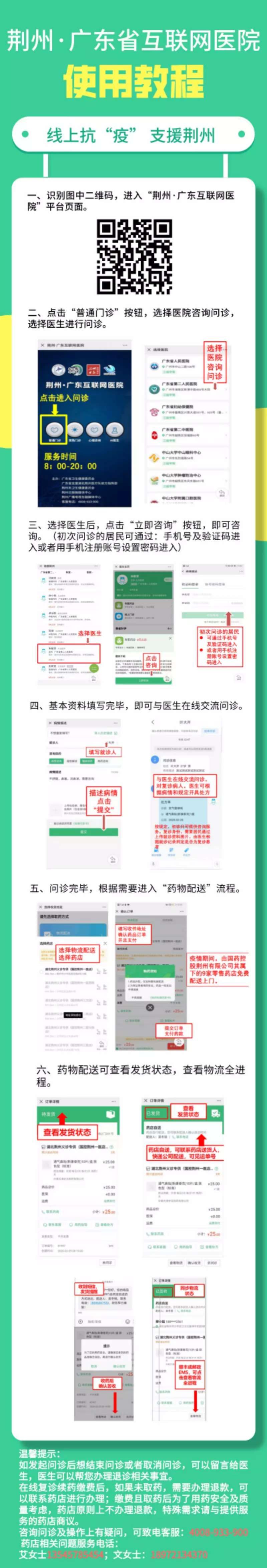 荊州廣東互聯(lián)網(wǎng)醫(yī)院自2月29日上線,依托廣東優(yōu)質線上服務資源,為荊州市民提供的常見病慢性病復診、就診指導、新冠肺炎咨詢、心理疏導、健康宣教、健康評估、送藥上門等免費服務在疫情期間為荊州市民就診和用藥提供方便。