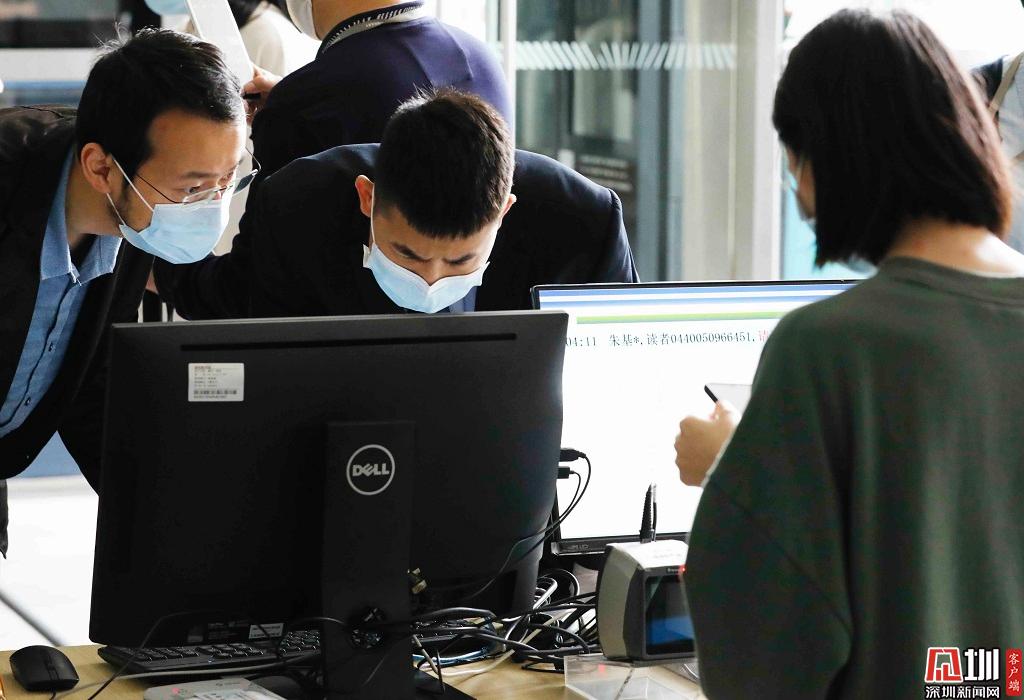深圳圖書館入口處,工作人員正在驗(yàn)證入場(chǎng)者的讀者證。