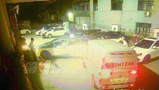 監(jiān)控畫(huà)面顯示,25日晚上23點(diǎn)左右,一輛出租車和一輛面包車先后到達(dá)龍崗大道木棉灣路段的一個(gè)充電站。出租車司機(jī)先找到了一個(gè)位置,準(zhǔn)備倒入充電時(shí),后面的面包車突然往前開(kāi),兩名司機(jī)因?yàn)橥\囄坏膯?wèn)題發(fā)生爭(zhēng)執(zhí)。隨后,出租車司機(jī)下車?yán)碚?,?dòng)手推搡了面包車司機(jī)一下。