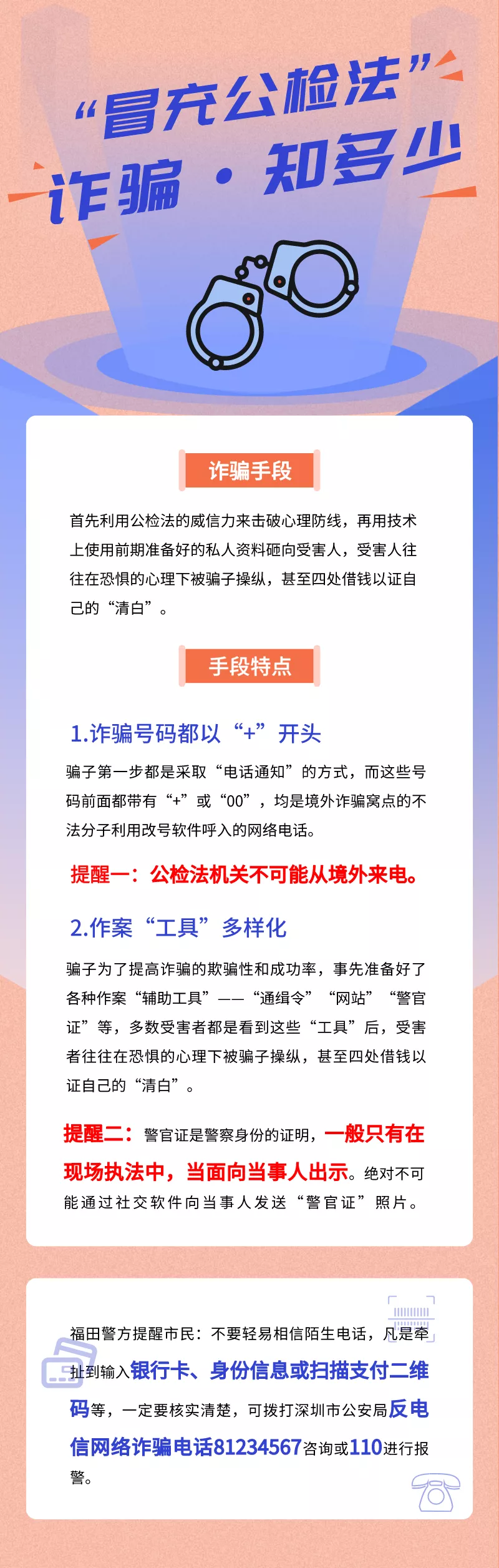 上述多宗電話(huà)詐騙案中,民警均一一向事主講解了冒充公檢法、假借網(wǎng)絡(luò)貸款實(shí)施詐騙的手段和方式,同時(shí)又對(duì)事主講述了生活中常見(jiàn)的詐騙手段和疫情期間高發(fā)的詐騙手段等,讓事主加強(qiáng)防范意識(shí)。