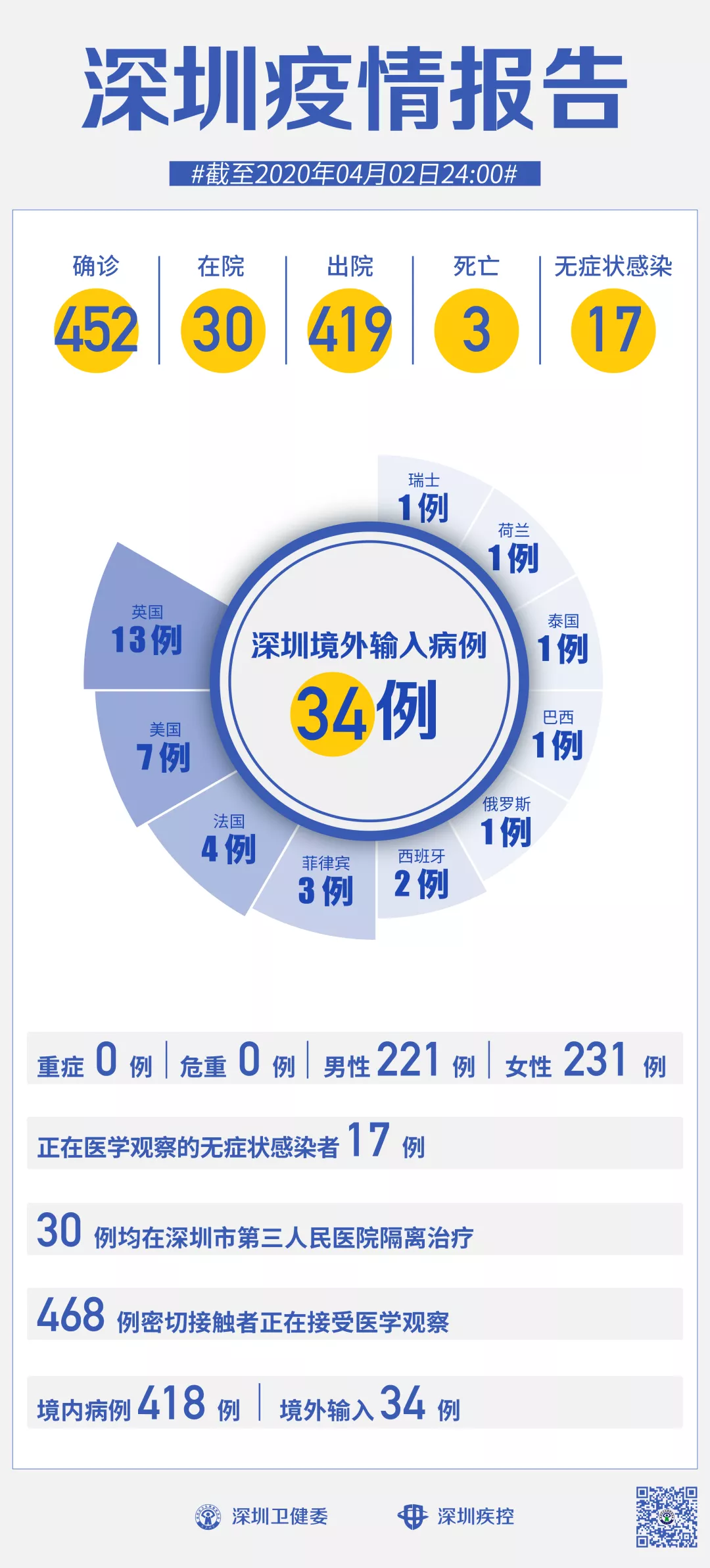 目前,死亡3例,累計(jì)出院419例。30例確診病例均在深圳市第三人民醫(yī)院隔離治療。