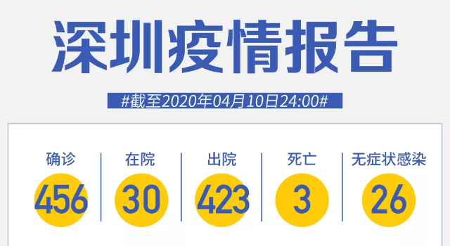 截至4月8日24時,深圳累計報告新冠肺炎病例456例。4月8日當天新增無癥狀感染者1例,出院1例。