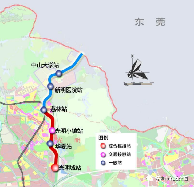 6號線支線二期工程自翠湖站(原荔林站)至光明城站,線路長度4.9公里(地下線4.25公里、地上線0.65公里),采用B型車6輛編組;建設(shè)工期4年。