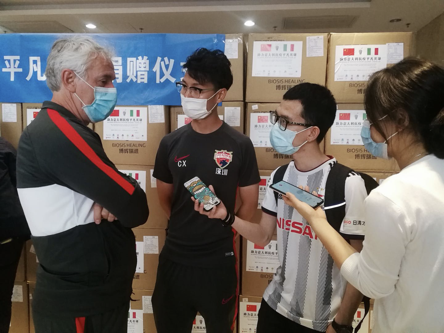 “感謝深圳?!碑斕?,AC米蘭俱樂部前教練、深圳佳兆業(yè)足球隊主教練多納多尼作為在深意大利人代表也來到了活動現場。他表示,來深圳不到一年,已經深刻感受到深圳的城市魅力?!爸袊谶@次抗擊疫情的過程中表現完美,每個人的一舉一動不僅是為自己,更是為別人,這非常令我感動。此次捐贈對于意大利來說十分重要,我代表我的祖國向大家表示由衷的感謝?!倍嗉{多尼在現場動情地說。(記者 許舜鈿)