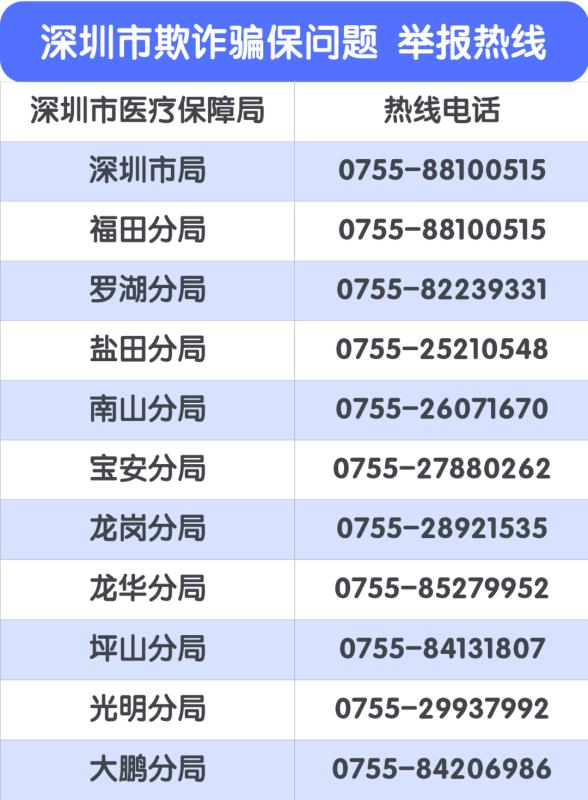 市醫(yī)保局已在深圳市各區(qū)設(shè)立投訴舉報電話,歡迎廣大市民共同參與醫(yī)?;鸨O(jiān)督管理。市民可通過實(shí)名舉報和匿名舉報方式檢舉、揭發(fā)欺詐騙保行為,經(jīng)查證屬實(shí)的,將根據(jù)《深圳市欺詐騙取醫(yī)療保障基金行為舉報獎勵實(shí)施細(xì)則(試行)》對舉報人予以獎勵,獎金最高可達(dá)10萬元?。ㄓ浾?莊瑞玉)