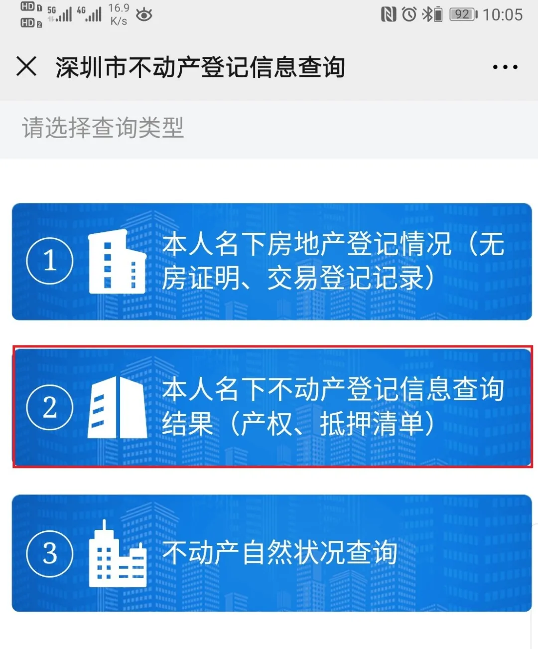 再點擊“本人名下不動產(chǎn)登記信息查詢結(jié)果(產(chǎn)權(quán)、抵押清單)”—“查看詳情”下載“不動產(chǎn)權(quán)資料電腦查詢結(jié)果表”。