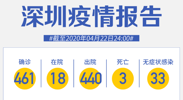 截至4月22日24時,深圳累計(jì)報(bào)告新冠肺炎病例461例。4月22日當(dāng)天新增出院1例。