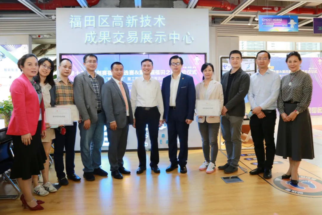 隨后,范坤與福田區(qū)科技創(chuàng)新局局長(zhǎng)張忠暉等共同上臺(tái)啟動(dòng)第十二屆深創(chuàng)賽福田預(yù)選賽暨第四屆“福田之星”大賽,同時(shí)為福田高科館授予“福田科技港灣”牌匾。