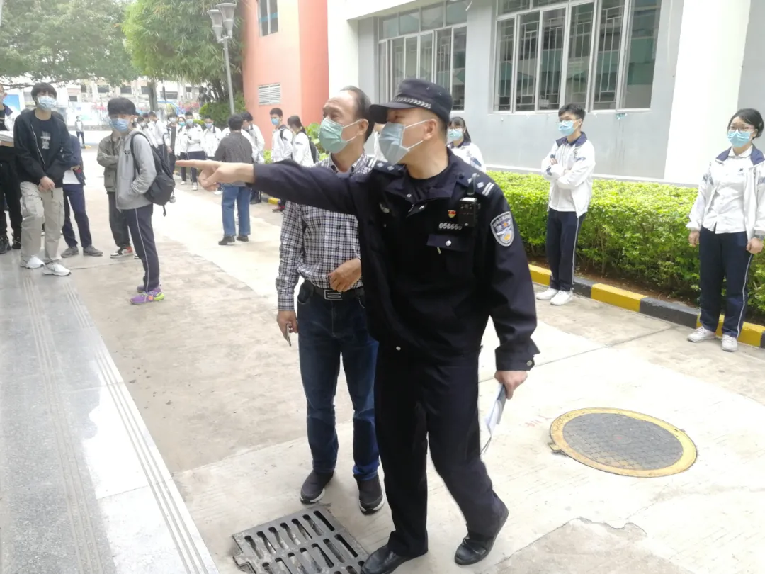 “學校大門是校園疫情防控的第一道防線,把好校園第一道關卡至關重要,采取全封閉管理,對外來人員嚴格詢問登記,逢車必檢、逢人必查,在上學放學高峰時段確保校門口安保力量,將風險隱患攔截在校門外?!?月21日,在福田區(qū)云頂學校排查安全隱患時,福強派出所社區(qū)民警程印對該校安全負責人特別強調。據了解,截至4月25日,福田公安分局對轄區(qū)44所中學開展了檢查,發(fā)現(xiàn)并整改問題隱患17處。