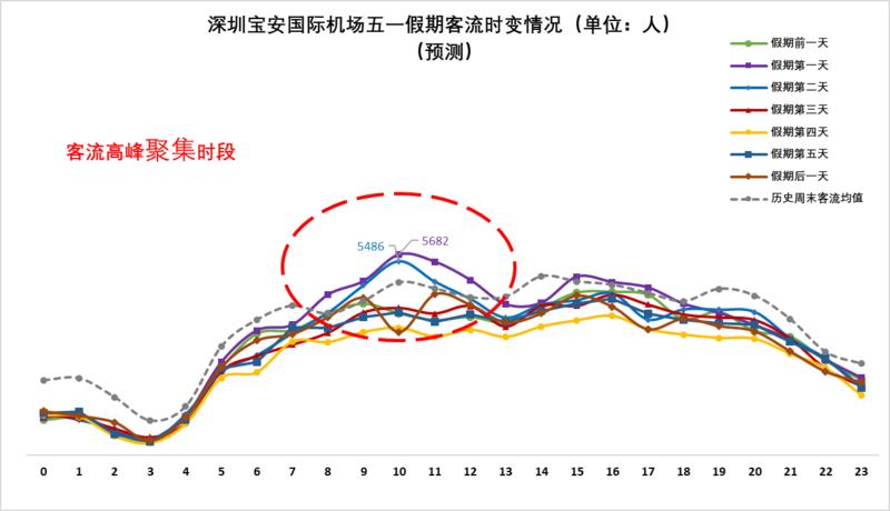 ▲預(yù)計(jì)深圳寶安機(jī)場(chǎng)5月1日(假期第一天)、5月2日(假期第二天)的上午時(shí)段較易出現(xiàn)當(dāng)日客流高峰。