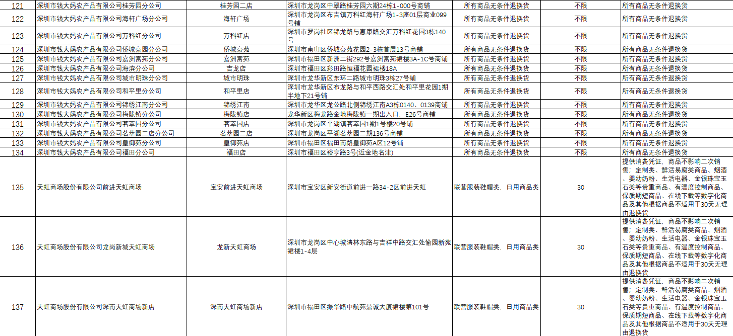 附件:首批參與“線下無理由退貨承諾”企業(yè)名單