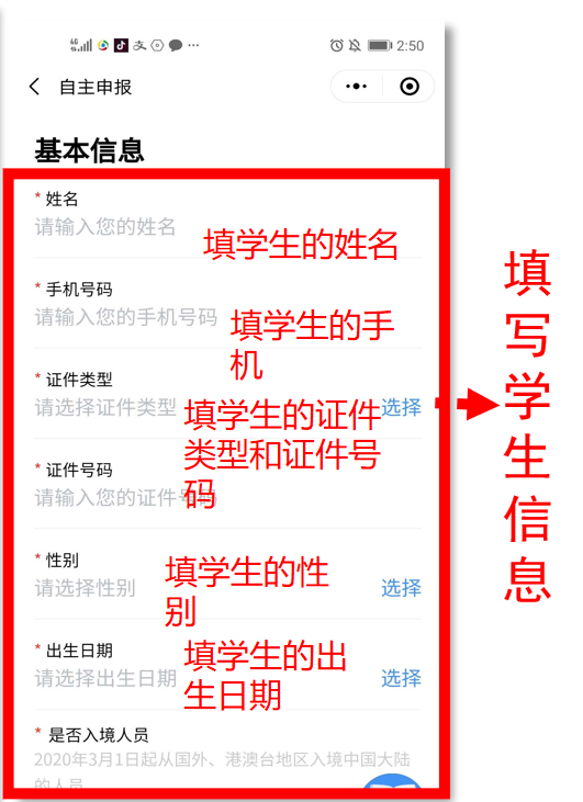 ②完成后系統(tǒng)提示進行學(xué)生登記,進入學(xué)生登記后列表,若沒有學(xué)生的信息,需要為學(xué)生進行自主申報。方式為:點擊首頁自主申報,按照系統(tǒng)提示為學(xué)生完成申報。