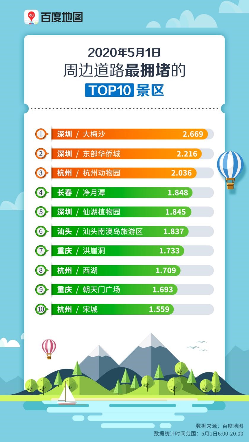百度地圖“5月1日周邊道路最擁堵的TOP10景區(qū)”