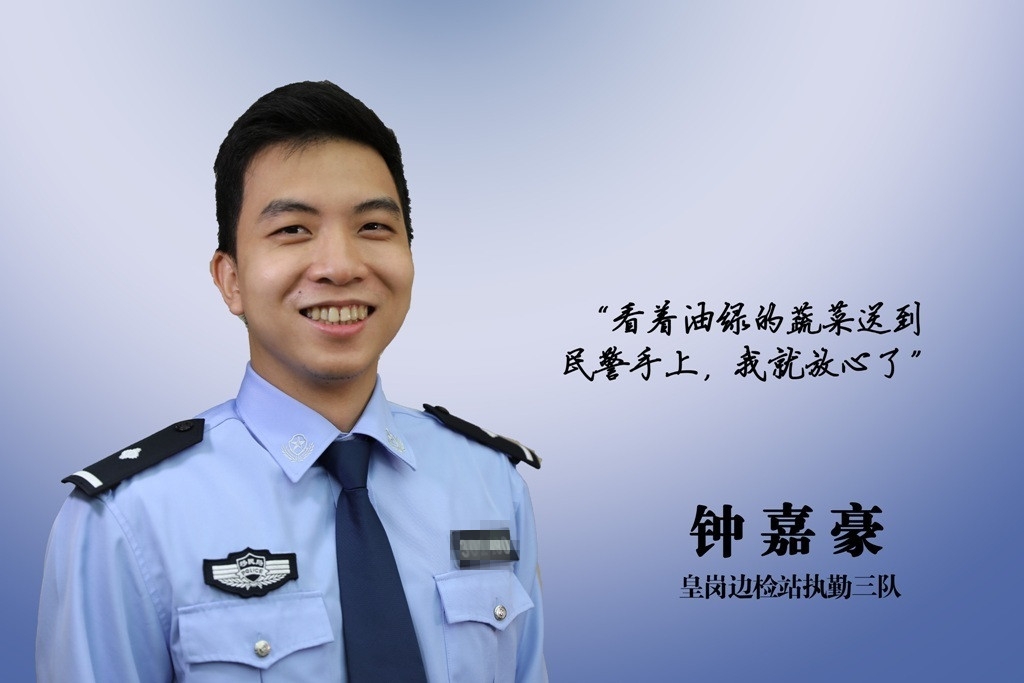 民警鐘嘉豪:借用后勤保障處工作期間,每日統(tǒng)計(jì)上百斤食堂采購時(shí)蔬無遺漏,穩(wěn)住民警職工“菜籃子”?!翱粗途G的蔬菜送到民警手上,我就放心了?!?/p>