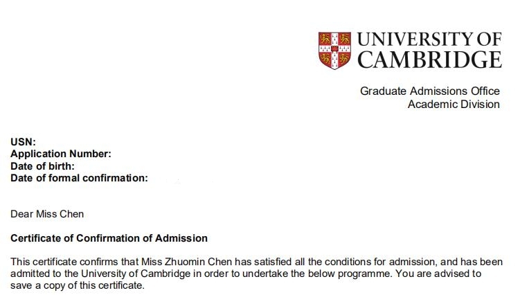 劍橋大學(xué)的錄取通知書