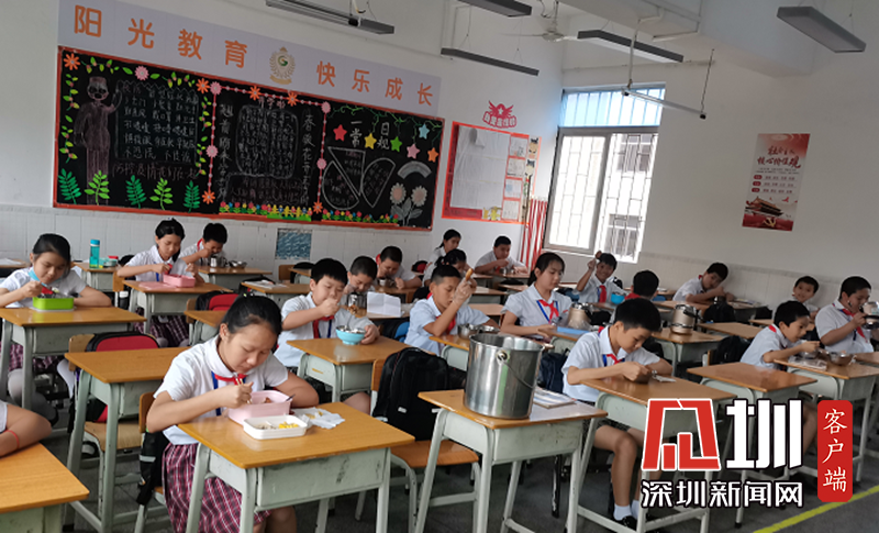 中午學生們正在教室安靜的文明就餐