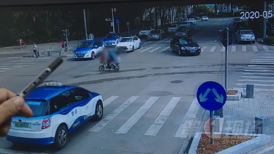 5月12日下午,在南山外國語學??圃沸W與南山外國語學校中間路段,一位老人騎電單車,載著一名小學女生,沿著高新南環(huán)路由西往東方向行駛。