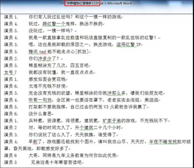 在“炸群”過程中,員工扮演不同角色,按照話術(shù)本,在群里給小劉這些真實(shí)玩家上演了一出出“炸群”大戲。