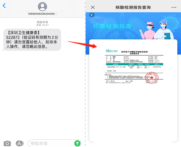 ④進行短信驗證后,即可查詢15天內(nèi)(從5月11日起)的核酸檢測報告