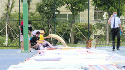 籃球場上已經(jīng)鋪上了長長的墊子