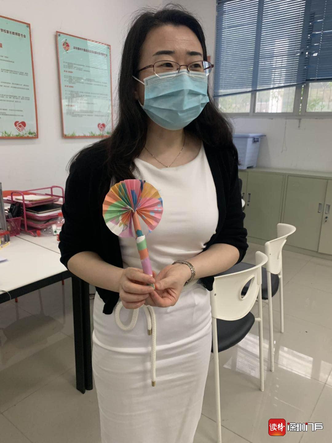 螺嶺外國語實(shí)驗(yàn)學(xué)校三年級(jí)(12)班的學(xué)生林子軒專門為老師做了小折扇,一進(jìn)校門就送到了老師手里,怕老師熱。