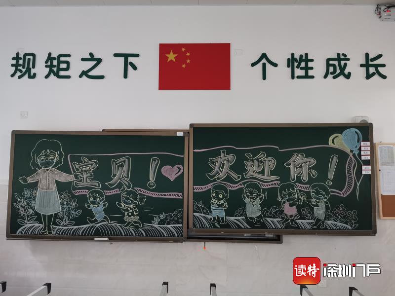 布吉派出所、布吉衛(wèi)監(jiān)所、文景社康中心、值日行政、值日教師全部集結(jié)。黑板上老師們精心布置的歡迎詞,有屬于孩子們的獨(dú)家記憶!