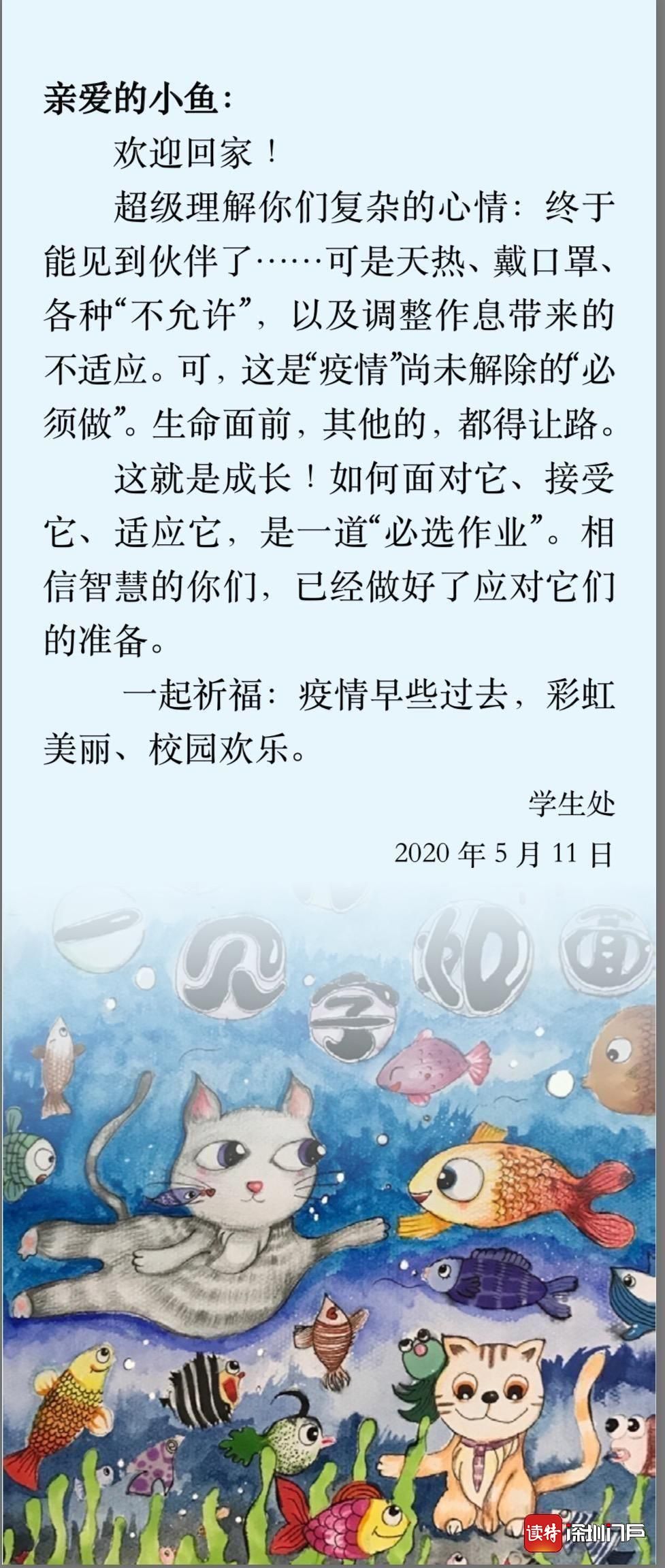 深圳小學(xué)專門為返校學(xué)生提供了“暖心包”,將口罩、疫情防控工作指引、健康信息申報(bào)卡等裝進(jìn)來。班主任在心理教師的指導(dǎo)下,根據(jù)學(xué)生的年齡特點(diǎn)和心理特點(diǎn)進(jìn)行課程設(shè)計(jì),引導(dǎo)學(xué)生分享疫情期間的“正能量”,增強(qiáng)學(xué)生對(duì)學(xué)校、班級(jí)的歸屬感,幫助學(xué)生盡快恢復(fù)正常的學(xué)習(xí)和生活節(jié)奏。(讀特記者姚卓文)