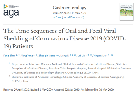 見圳客戶端·深圳新聞網(wǎng)2020年5月20日訊(深圳特區(qū)報(bào)記者 戴曉蓉 通訊員 深三院)國(guó)際知名醫(yī)學(xué)雜志“胃腸病學(xué)(Gastroenterology)”于5月16日在線重磅推出了深圳市第三人醫(yī)院(深圳三院)關(guān)于新冠肺炎患者腸道排毒特征及規(guī)律的研究論文《The Time Sequences of Oral and Fecal Viral Shedding of Coronavirus Disease2019(COVID-19) Patients》。該雜志的學(xué)術(shù)影響力在胃腸病學(xué)和肝病專業(yè)領(lǐng)域排名第一。