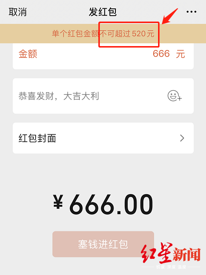 見(jiàn)圳客戶端·深圳新聞網(wǎng)2020年5月20日訊 今天是5月20日,“520”諧音“我愛(ài)你”,被網(wǎng)友們賦予了“節(jié)日”屬性。騰訊微信團(tuán)隊(duì)宣布,5月20日00:00-23:59,微信普通紅包的單個(gè)金額上限由200元上調(diào)到520元。此前微信普通紅包單個(gè)限額200元,如果需要發(fā)送超過(guò)200元的紅包給好友,則需要分次發(fā)送。