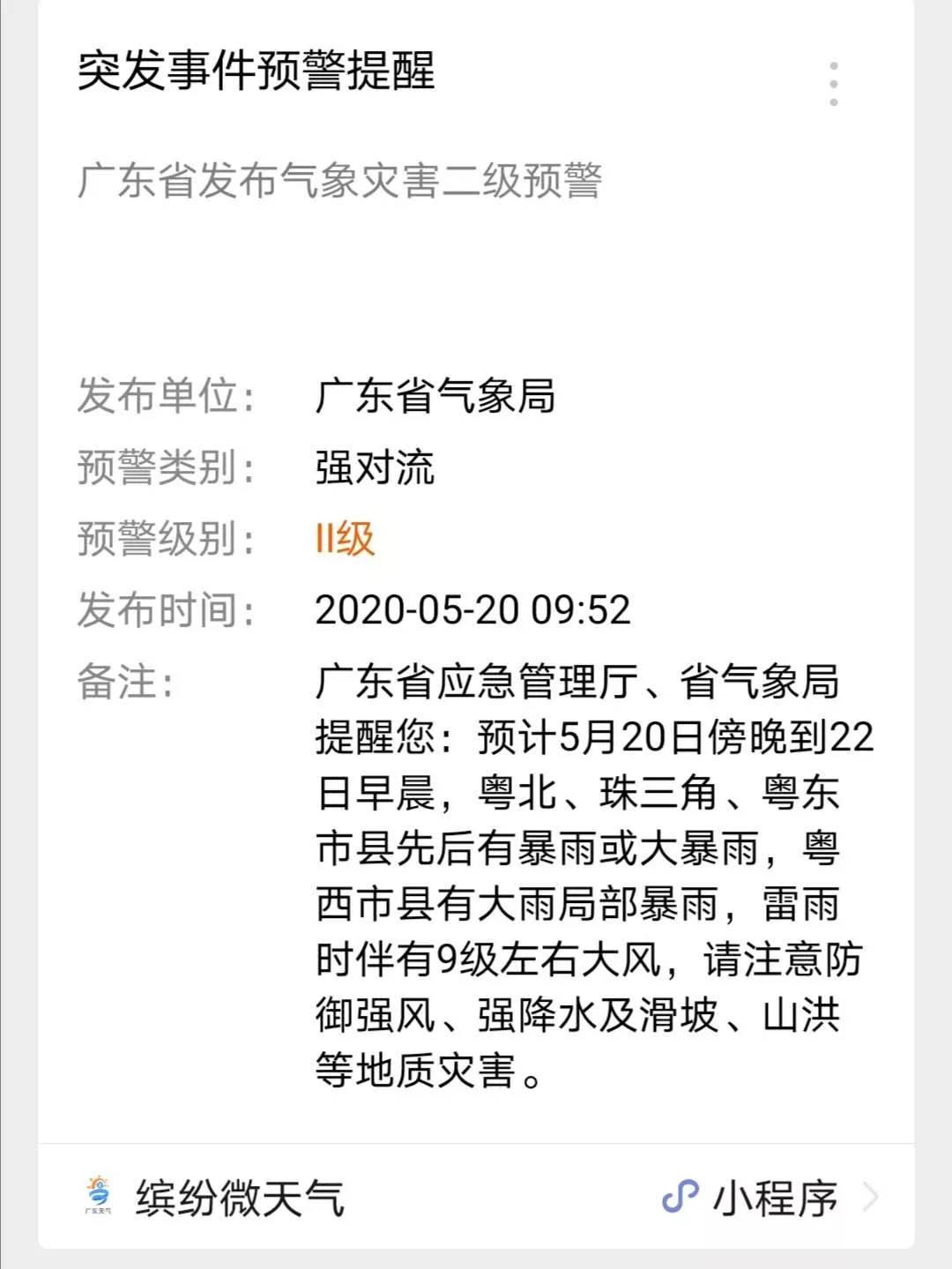強對流短信預警提醒