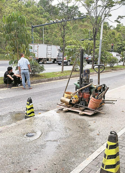 2020年5月1日,執(zhí)法支隊(duì)龍崗大隊(duì)執(zhí)法人員在轄區(qū)內(nèi)值班巡查時(shí),接到投訴稱愛(ài)南路上海外國(guó)語(yǔ)學(xué)校門口有道路施工人員鉆探時(shí)鉆破水管,現(xiàn)場(chǎng)水流滿地,請(qǐng)求執(zhí)法人員前往調(diào)查。