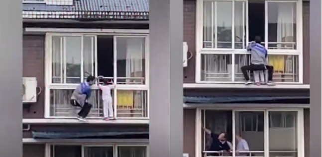 5月21日,四川富順縣一個(gè)5歲女童翻出6樓窗外,居民趕緊在樓下?lián)纹鸨蛔?,路過的小伙胡云川則從5樓陽臺爬到6樓把孩子塞回屋內(nèi)。