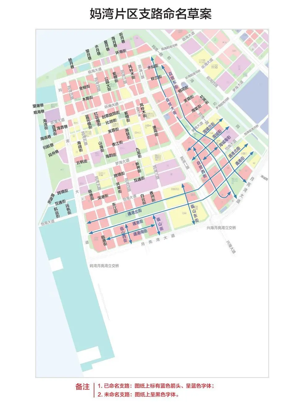 據(jù)悉,2013年市政府同意的《前海深港現(xiàn)代服務(wù)業(yè)合作區(qū)地名規(guī)劃》,確定了前海15平方公里范圍內(nèi)桂灣、前灣、媽灣三個(gè)片區(qū)名稱(chēng),臨海大道、聽(tīng)海大道等主次干道名稱(chēng),橋梁、立交設(shè)施名稱(chēng),以及濱海公園、濱海休閑帶等名稱(chēng)。未覆蓋前海15平方公里范圍內(nèi)支路名稱(chēng)。