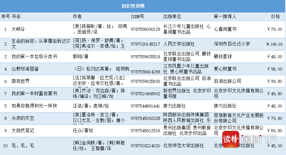 見圳客戶端·深圳新聞網(wǎng)2020年6月1日訊(記者 馬璇 通訊員 周知)第七屆“我最喜愛的童書”閱讀推廣活動自4月23日啟幕以來,全國34家單位強強聯(lián)手,共同打造國內(nèi)具公信力、影響力的少兒閱讀推廣活動。經(jīng)過專家學(xué)者推選、網(wǎng)絡(luò)投票等環(huán)節(jié),30強圖書于6月1日火熱出爐。