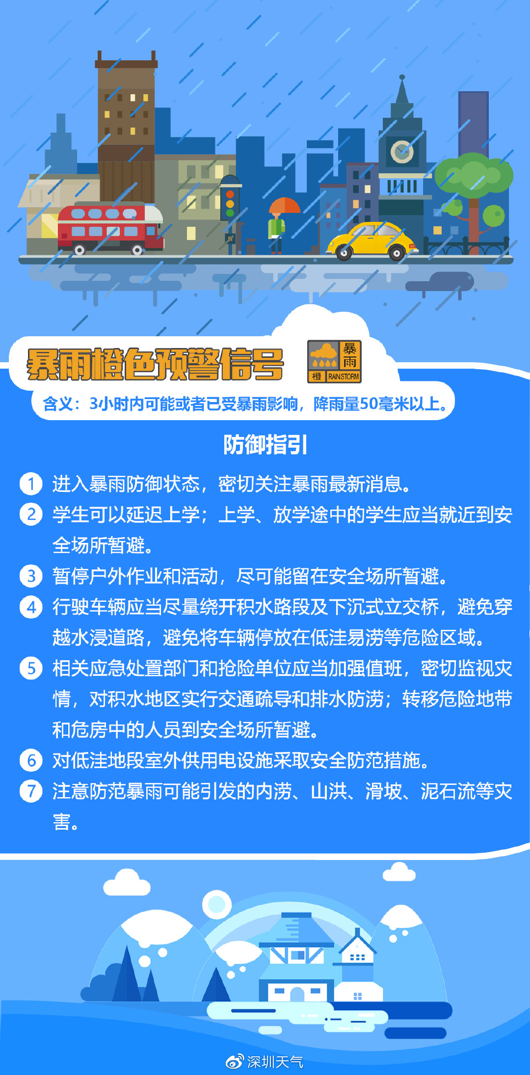 據(jù)深圳天氣微博消息,過去1小時,大鵬新區(qū)和東部海區(qū)累計雨量已達(dá)暴雨,預(yù)計強降雨還將持續(xù)2-3小時,全市進(jìn)入暴雨防御狀態(tài),請注意防御。中小學(xué)、幼兒園可視情況推遲上學(xué)。同時暴雨黃色分區(qū)、大風(fēng)黃色、雷電預(yù)警正在生效中,請注意做好防御。