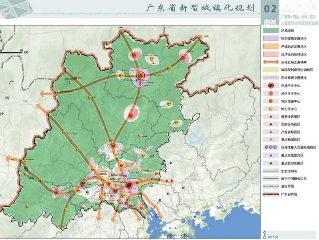 2017年公布的“廣佛肇+清遠(yuǎn)、云浮、韶關(guān)”大都市區(qū)空間發(fā)展規(guī)劃圖。