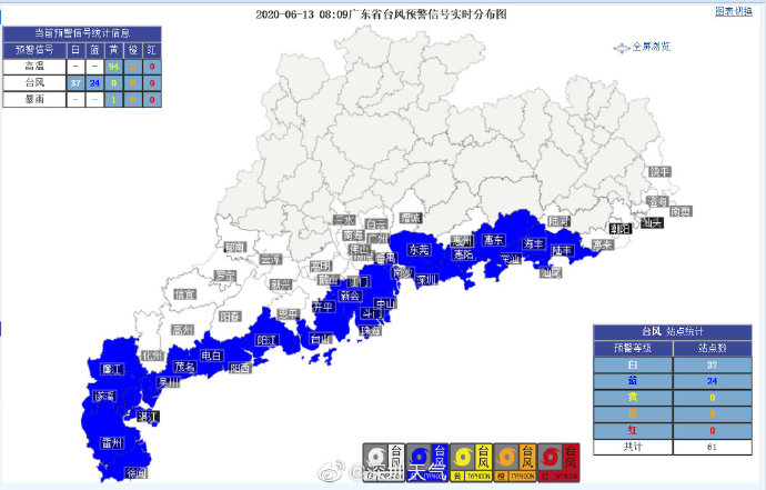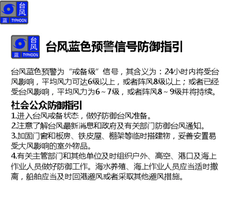 【深圳市臺風藍色預警信號正在生效中】
