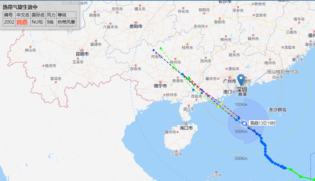 6月13日21時臺風“鸚鵡”(熱帶風暴級)位于深圳市南方約249公里南海海面上,中心附近最大風力9級。預計其將繼續(xù)向西北方向移動,趨向江門至茂名附近海域,最大可能14日上午以強熱帶風暴級在陽江附近登陸。13日夜間起沿海海區(qū)及深汕區(qū)風力逐漸加大,最大風力6-7級,最大陣風8-10級;14日0時至17時有大雨到暴雨,14日夜間起降雨明顯減弱。目前臺風藍色、海浪藍色和雷電預警信號生效中。