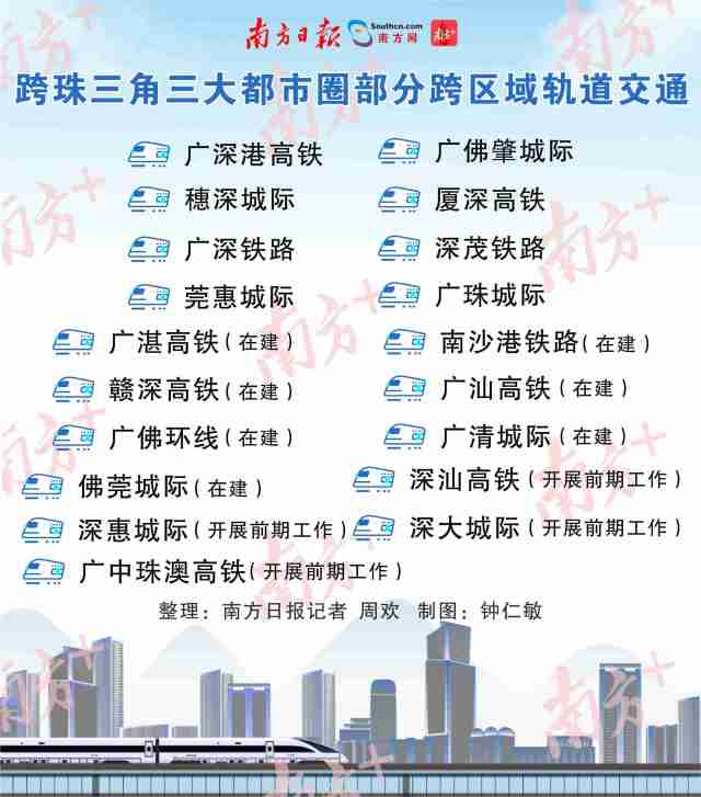 在珠三角,軌道交通也在緊鑼密鼓推進(jìn)。設(shè)計(jì)時(shí)速350公里的兩條大動(dòng)脈——連接深圳、東莞、惠州、河源的贛深高鐵,及連接廣州、惠州、汕尾的廣汕高鐵,正加快建設(shè),分別計(jì)劃2021年、2022年建成。屆時(shí),這些城市可1小時(shí)內(nèi)互通。