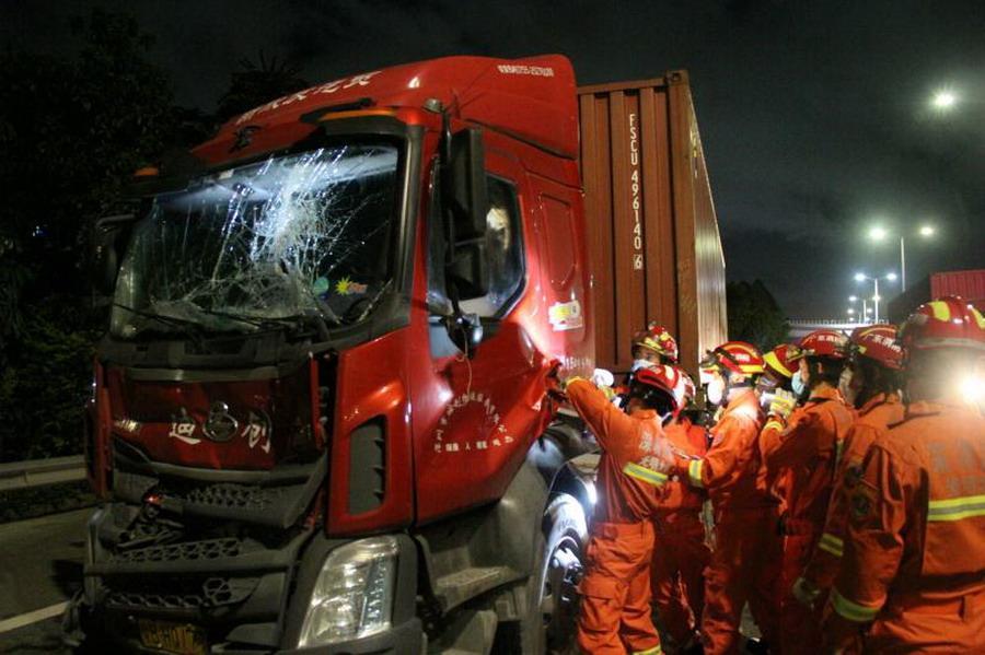 見圳客戶端·深圳新聞網2020年6月17日訊(見圳客戶端、深圳新聞網記者 張喆 通信員 戴沛旭)6月16日4時16分,位于龍大高速往東莞方向黃江公明出口500米處,兩輛大貨車在行駛過程中發(fā)生追尾,后車司機被困駕駛室。接警后,光明消防救援站迅速出動4車22名指戰(zhàn)員趕赴現場處置。到達現場后救援人員第一時間對現場拉起警戒,隨后利用破拆工具破開車門救出被困駕駛員,經檢查詢問男子身體無大礙。