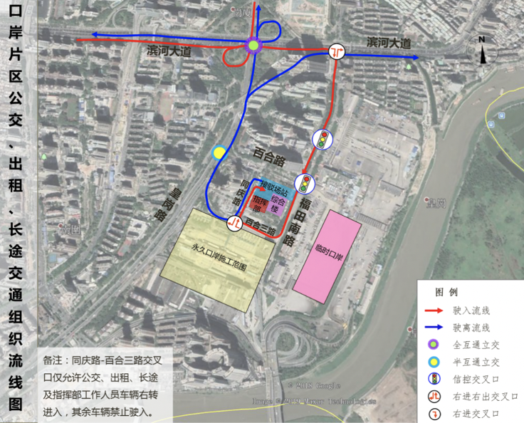 目前,臨時(shí)口岸配套交通設(shè)施已陸續(xù)完成建設(shè),已達(dá)到啟用條件,計(jì)劃于6月24日啟用。為保障臨時(shí)口岸使用期間口岸片區(qū)交通運(yùn)行順暢,市交通運(yùn)輸局福田管理局制訂了臨時(shí)公交、的士及交通場(chǎng)站轉(zhuǎn)場(chǎng)方案以及片區(qū)交通疏導(dǎo)方案,為廣大市民出行提供指引。